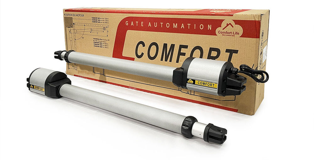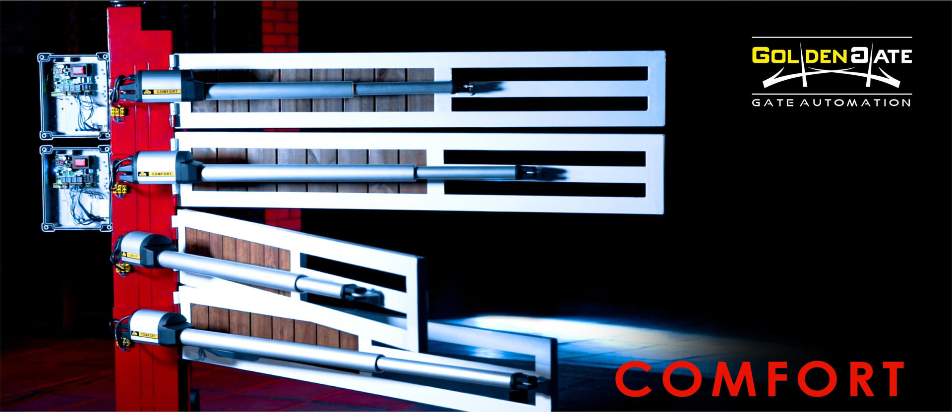 جک بازویی و پارکینگی کامفورت مناسب برای درب های دو لنکه و تک لنگه خانگی و صنعتی میباشد ، این مدل جک برقی پارکینگی ، محصول شرکت گلدن گیت میباشد و با مدل های کامفورت 400 ، کامفورت 500 ، کامفورت 600 ، کامفورت 1000 و کامفورت 2000 در بازار درب های اتوماتیک و جک های پارکینگی عرضه میگردد.