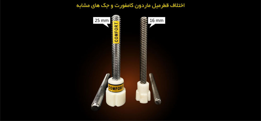 استیل میل ماردون با قطر 25 میلیمتر و مهره ماردون قوی طراحی شده کامفورت باعث شده است که طول عمر و کارایی بالاتری نسبت به جک های برقی دیگر پیدا کند. برای درب های سنگین بدون شک جک کامفورت مناسب ترین گزینه می باشد.