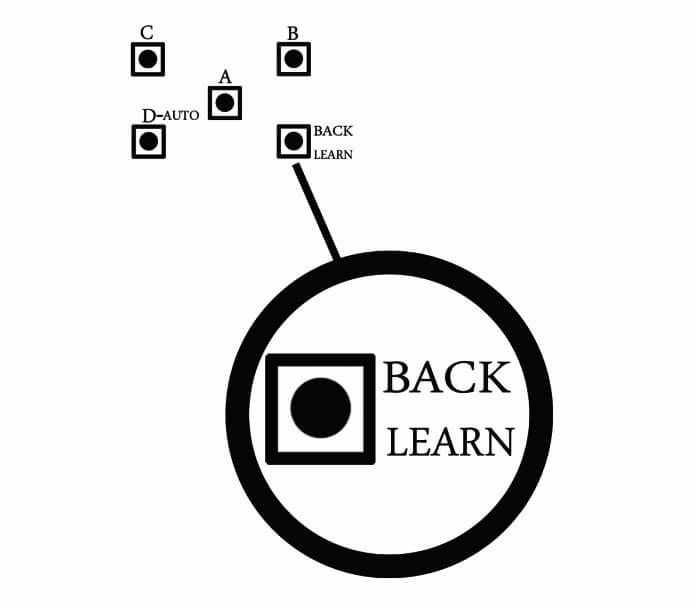 با نگه داشتن 3 ثانیه دکمه LEARN صفحه نمایش به چرخش در می آید و با زدن یکی از دکمه های ریموت کد آن بصورت 4 کانال ذخیره می شود.